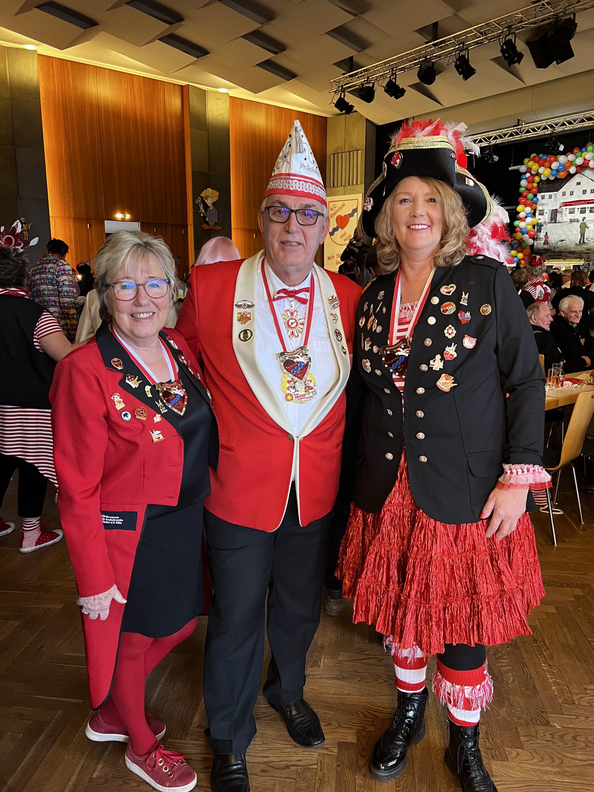 Am 15. Februar 2025 fand die jüngste Sitzung im kleinen Pfarrsaal in Köln Blumenberg statt, dem „Gürzenich von Blumenberg“ wie Rosi Mönch ihn auch liebevoll nennt. Reinpassen nur etwa 100 Gäste, die aber ordentlich Stimmung machen. Maria Müller, als betroffene Mutter aktiv für den Förderverein, kennt die Gänseblömcher schon seit 2007, da war sie das erste Mal zu Gast bei der Sitzung. In diesem Jahr war sie gemeinsam mit Monika Burger-Schmidt, Geschäftsführerin unseres Fördervereins, vor Ort. Beide zeigten sich begeistert von der Veranstaltung.