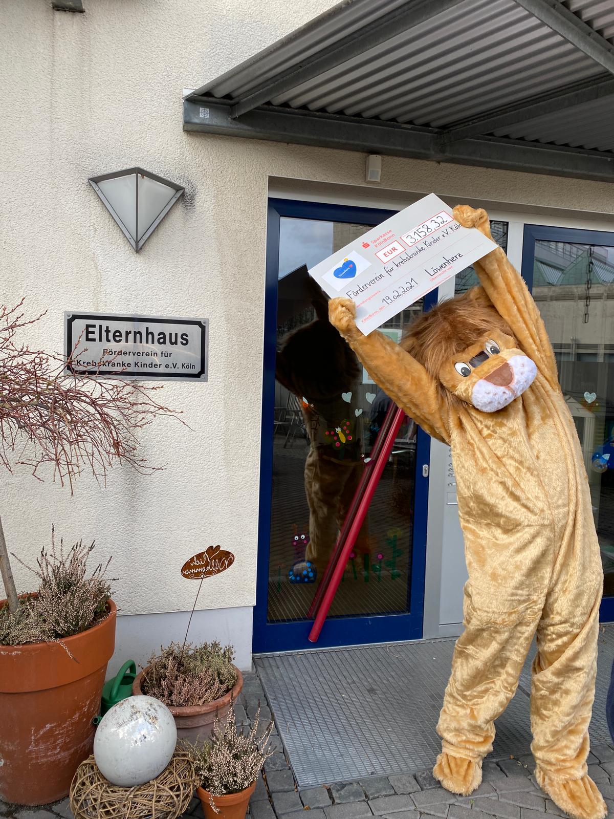 Und Richie wollte es sich nehmen lassen, den Spendenscheck selbst im Elternhaus vorbeizubringen. Gemeinsam mit Marvin Kurz überreichte der stolze Löwe am 19.02.2021 die Spende an die Fördervereinsvertreterinnen Maria Müller und Marlene Merhar. Gründerin Vanessa Fuchs konnte leider nicht dabei sein. Sie ließ sich jedoch von ihrer Mutter Sabine Fuchs vertreten, die über den traditionsreichen Reibekuchen-Verkauf der Zündorfer Ortsvereine schon viele Jahre mit unserem Förderverein verbunden ist.