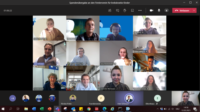In den vergangenen Jahren fand die Spendenübergabe immer vor Ort im Elternhaus statt. Auf diese Weise konnten sich die Auszubildenden selbst ein Bild davon machen, für was die Spenden gebraucht werden. Dieses Jahr musste über eine virtuelle Alternative nachgedacht werden. Die symbolische Spendenübergabe fand schließlich bei einer Videokonferenz statt. Gemeinsam mit unserer Vorsitzenden Marlene Merhar und dem stellv. Elternhausleiter Dirk Zurmühlen wurde das vergangene Jahr Revue passieren gelassen. Es wurde über die Herausforderungen gesprochen, aber auch über die neuen Möglichkeiten und Ideen, die aus der Not heraus entstanden sind. So erhielten die Auszubildenden einen guten Eindruck von der Arbeit des Fördervereins und des Elternhauses.