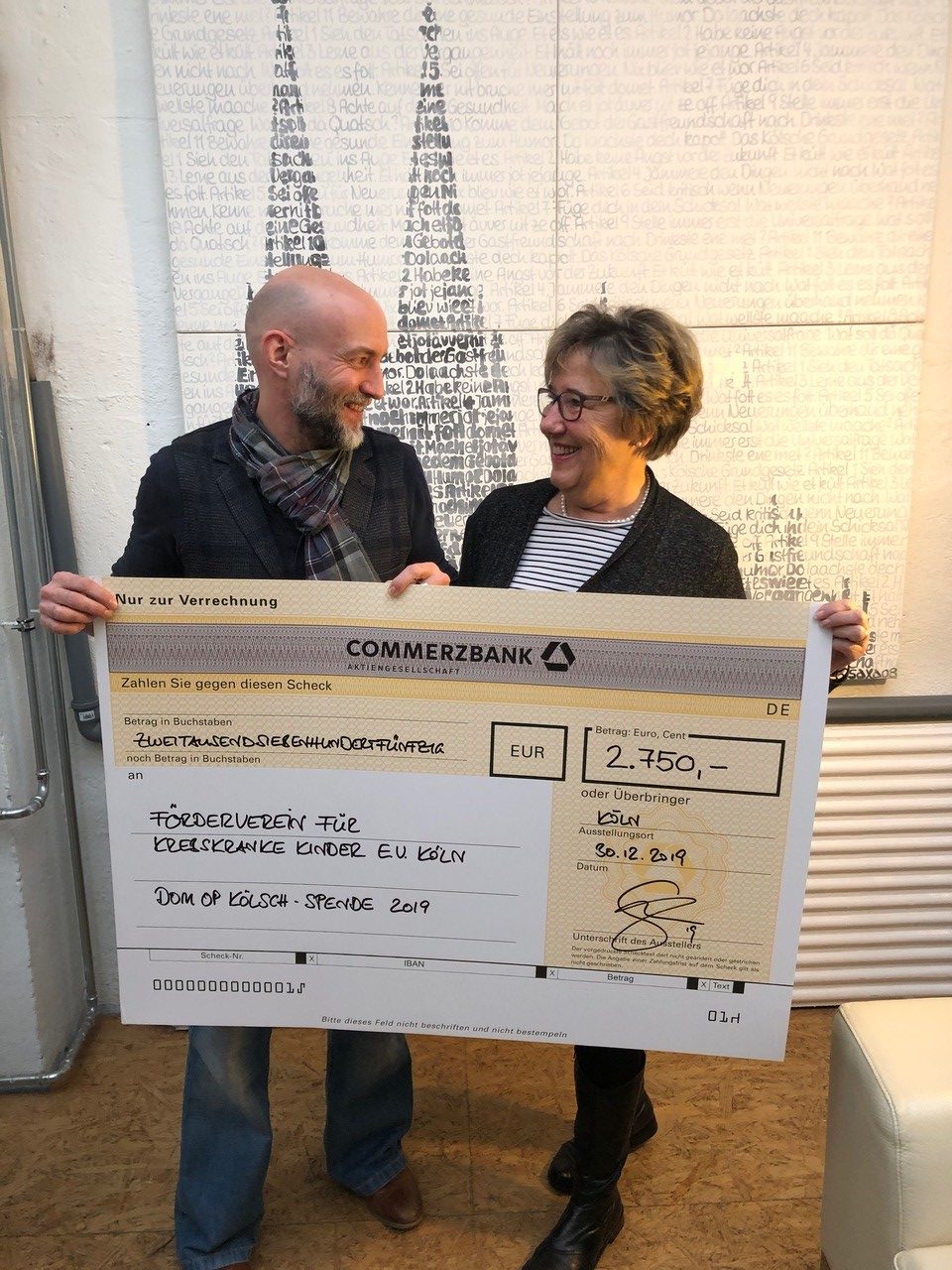 Sie erzählte vom Duft der Kuchen auf Station, die einmal in der Woche im Elternhaus für die Patientenfamilien gebacken werden. Sie berichtete davon, wie es sich anfühlt, wenn in der allzu-wörtlich angespannten Lage ein Mitarbeiter des Elternhauses vorbeikommt mit einer Liste für eine kostenlose Massage. Auch wenn sie durch die Nähe ihres Wohnortes an die Uniklinik Köln nicht selbst im Elternhaus gewohnt hätten, wäre ihnen besonders im Rückblick bewusst geworden, wieviel Unterstützung der Förderverein für krebskranke Kinder e.V. Köln den Patientenfamilien gibt. Unbürokratisch. Pragmatisch. Vor Ort.
