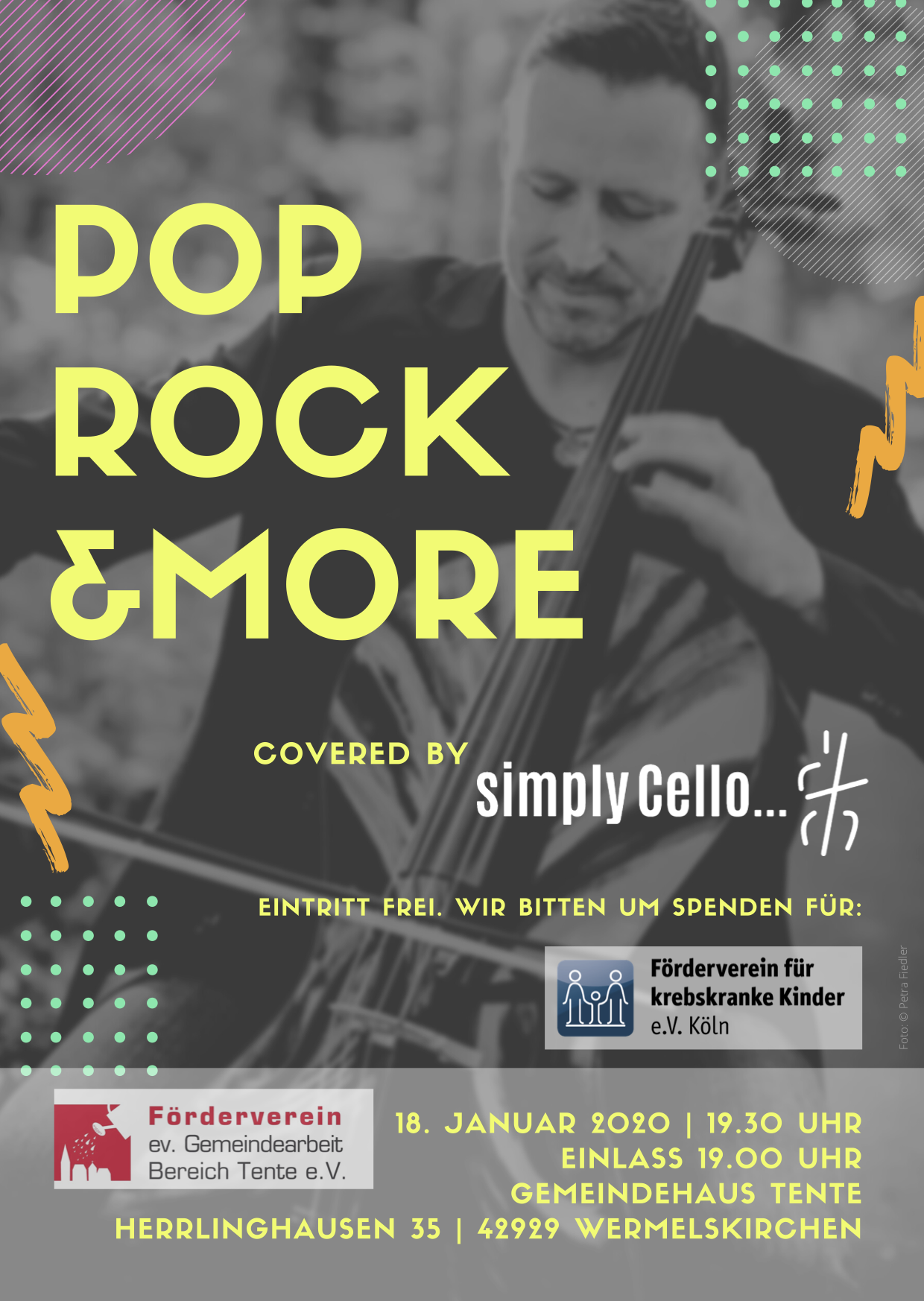 Johannes Friedrich gab Mitte Januar 2020 sein 3. Konzert zugunsten unseres Fördervereins für krebskranke Kinder e.V. Köln. Die Einladung versprach „Rock, Pop and More“, denn unter seinem Künstlertitel „simply Cello“ zeigt er, wie mitreißend modern und vielseitig das Violoncello klingen kann.