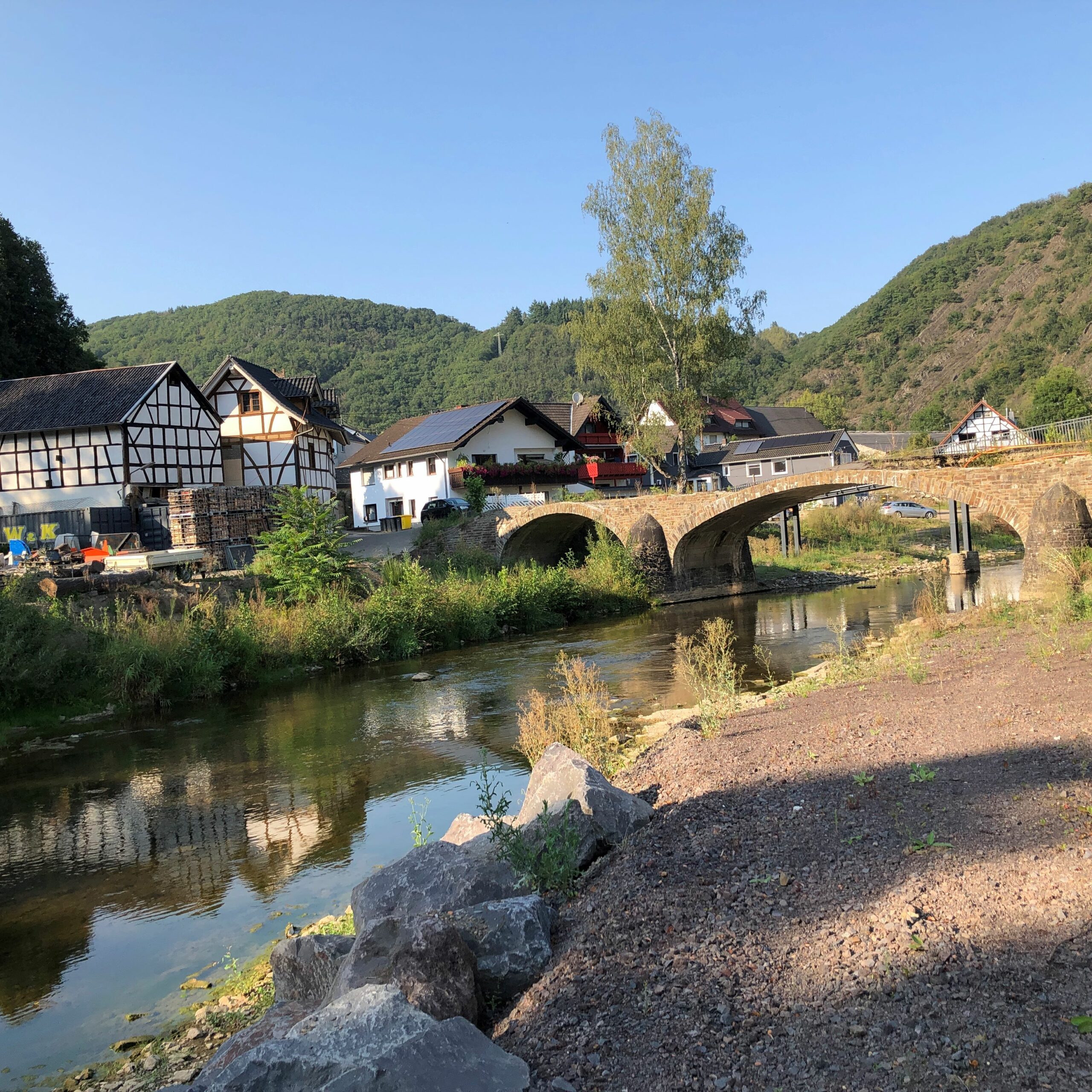 Schuld ist ein Dorf im Ahrtal, mit dem sich der Förderverein seit vielen Jahren verbunden fühlt. Seit 2016 lädt die Freilichtbühne Schuld e.V. unsere Familien fast jedes Jahr zu einem Ausflug ein. Umso größer war die Betroffenheit, als wir vom Ausmaß der Zerstörung nach der Flutkatastrophe im Juli 2021 hörten.