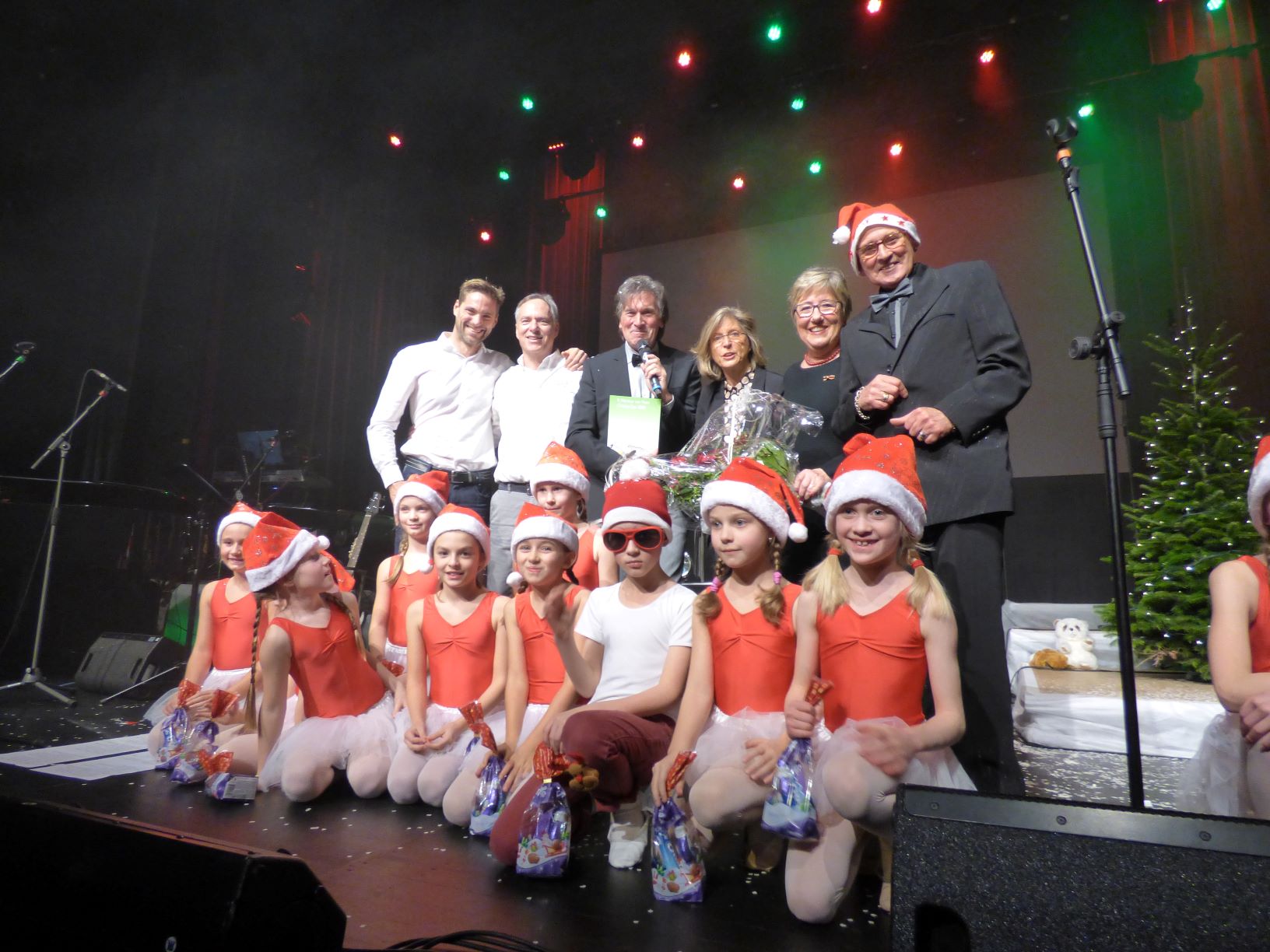 Von Abschiedsschmerz war allerdings in der Show nichts zu merken. Voller Energie moderierte ein gut aufgelegter Karl Timmermann die Künstler an, die für eine fröhlich-weihnachtliche Stimmung im Saal sorgten. Wie immer setzte er dabei auf eine bunte Mischung aus Kindertanzgruppen und -chören sowie auf namhafte Künstler aus Kevelaer und Umgebung, die singen, musizieren und mit Komikeinlagen für manchen Lacher sorgten. Auch die Sportprominenz kam: Schieß-As Anna Janshen aus Wetten ließ es sich nicht nehmen, als Botschafterin für die gute Sache aufzutreten. Für Gänsehaut sorgte zum Schluss der Weihnachtsklassiker „Stille Nacht, Heilige Nacht“, den das Publikum gemeinsam mit den Künstlern sang.