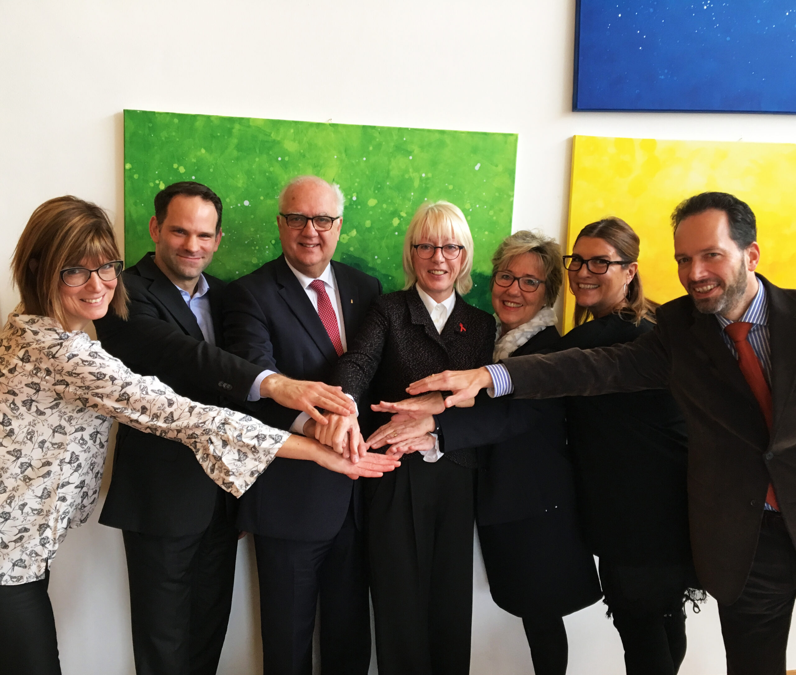 Da wir beide als Grundschullehrerinnen arbeiten, lag uns das Wohl von Kindern besonders am Herzen. Im November 2016 durften wir Monika Burger-Schmidt vom Förderverein für krebskranke Kinder e.V. in Köln kennenlernen. Sie zeigte uns an einem Freitagnachmittag das Elternhaus auf der Gleueler Straße und berichtete von allem, was der Förderverein für die an Krebs erkrankten Kinder und ihre Familien tut. Wir verließen das Elternhaus nach einer Stunde anders als wir gekommen waren. Wir hatten in dieser einen Stunde erlebt, was wirklich zählt im Leben, was wirklich wichtig ist. Für diese Kinder, Eltern, Geschwisterkinder, Familien, Mitarbeiter wollten wir ein Jahr lang laufend Spenden sammeln. Ganz nach dem Motto: ‚Krebs ist doof. Spenden nicht.‘ Besonders beeindruckt hat uns dabei das große Bild, das unten im Foyer des Elternhauses hängt und das der erste Patient vor vielen Jahren gemalt hat. Es trägt die Überschrift ‚Nur Fledermäuse lassen sich hängen‘. Zu diesem Zeitpunkt wussten wir noch nicht, wie sehr uns dieser Satz während des Jahres begleiten würde.