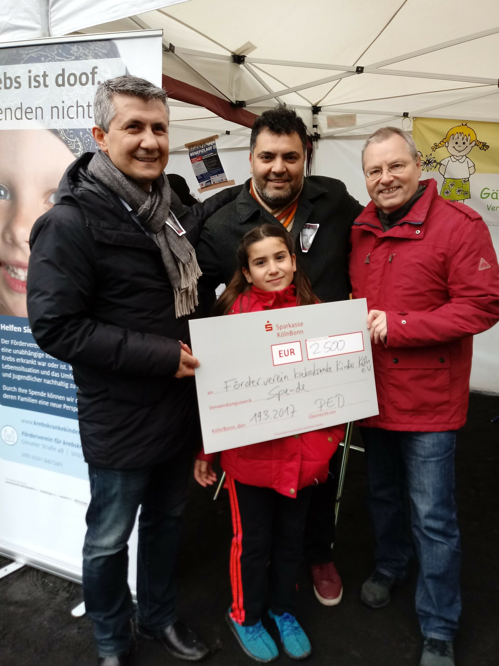 Die Erlöse des Benefiz-Laufes kommen, wie schon in den vergangenen Jahren, einem gemeinnützigen Zweck zu Gute. In diesem Jahr werden krebskranke Kinder unterstützt. Dabei erhielt unser Verein eine Spende von 1.500 €, die unserem Vorstandsmitglied Uwe Wenzel am Stand des Fördervereins durch die Tochter von Ali Kurt überreicht wurde.