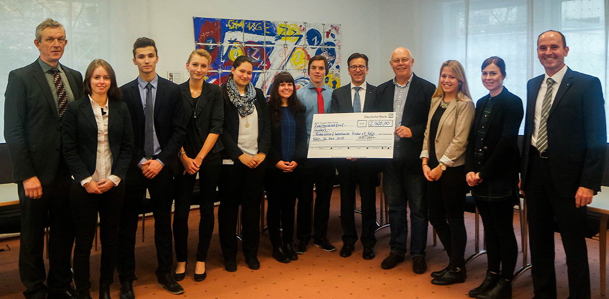 Neben dem gemeinsamen Erlebnis war es für die Auszubildenden wichtig, einen Beitrag zum Thema „soziale Verantwortung“ zu leisten. Sie haben Spenden gesammelt, die nun an den „Förderverein für krebskranke Kinder e.V. Köln“ übergeben werden, um den krebskranken Kindern und ihren Familien zu helfen.